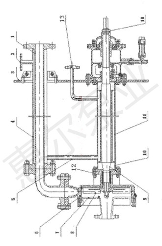 8.全开旋流式叶轮,9.泵轴,10.支撑管,11.第 二蒸汽夹套,12.调整螺母,13蒸汽进口。
